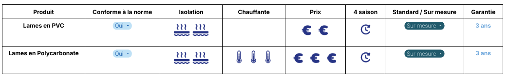 Les lames de volets solaires en Polycarbonate (PC) sont une révolution dans le domaine des volets de piscines. Beaucoup plus résistantes que les lames solaires en PVC, elles réchauffent votre piscine grâce à l'énergie solaire. Ce sont les lames les plus vendues sur des nouveaux projets de piscine justement pour ses qualités chauffantes. Durable, chauffante et surtout conforme à la norme NFP90 - 308, les lames de volet en PC continueront à remplir toutes les cases que vous souhaitez.
